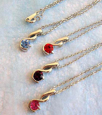 wholesale silver chain necklaces with twisted strip holding a rounded cz stone pendant