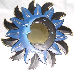 tan moon round black with stars, wall mirror, wooden framed, glass